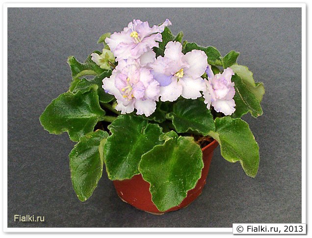 Фактическим стандартом фотографии фиалки в Интернет стал снимок, где показаны бутоны и видна половина розетки, та что рядом с бутоном. Остальная форма розетки домысливается по текстовому описанию: