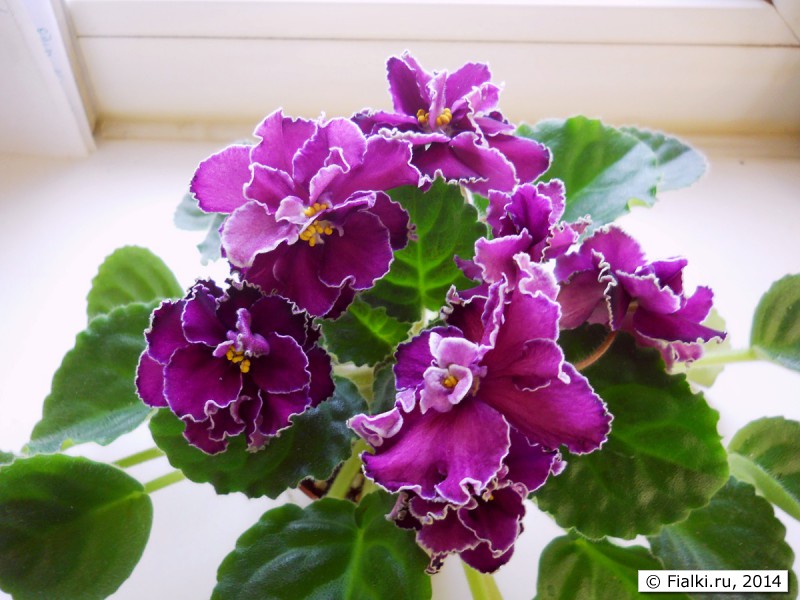 ...Ольга Осипенко. У меня тоже есть этот сорт. Он один из самых любимых, от него я даже и не подумаю избавиться, хотя он и "ретро". Только у меня во второе цветение выдал цветы с очень тёмными краями. У некоторых цветов был почти чёрный край. А когда, при первом цветении были такие же цветы, как показала Т. Лысикова, интересно, что на лепестках проглядывается венозный рисунок, такой нежный. А сорт сам очень беспроблемный. Выдаёт шикарную шапку и листьев, и цветов. Розетка формируется ровная, аккуратная, пушистая. Наращивает лист быстро. Листочки в форме сердечек, с заострённым кончиком. Зацветает одним из первых, цветёт продолжительно и , что немаловажно, цветы долго держатся. Очень эффектный! Растёт у меня на столе около подоконника, так что черенки не сильно вытягиваются и не короткие - в самый раз. Очень удивилась, когда на подаренной мной розетке у подруги цветы были по 8см., огромные и пышные шары!!!! Я думаю по тому, что она.... зачем-то обрывала почти все листья! Видимо все силы ушли на образование не листьев, а цветов. Зрелище конечно шикарное было - такие огромные бабочки! Я правда, считаю, что это кощунство - обрывать листья. Розетка голая получается, ведь иногда именно контраст листьев и цветов интересен, и по цвету, и по форме.