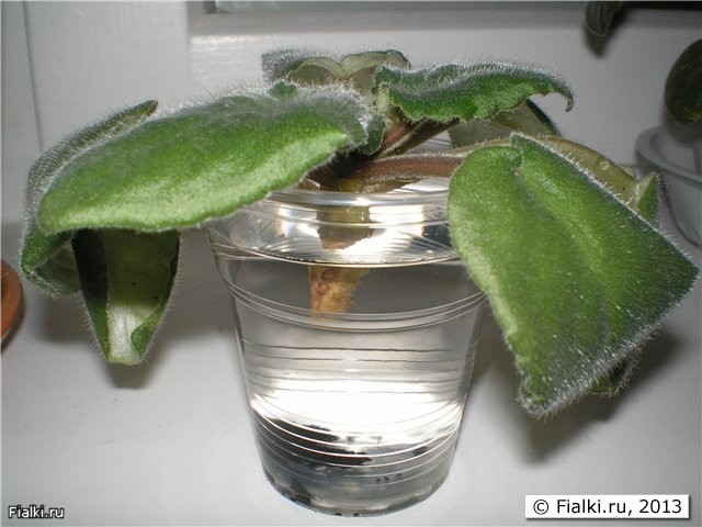 Кстати, когда укореняем в воде, можно потерять нижний ряд листьев. Так что, для верности ставьте в воду с лишним рядом. Потом либо сам отвалится, либо оборвёте.