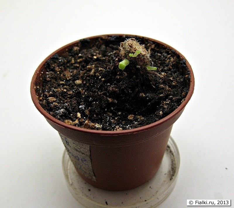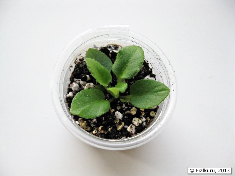 На протяжении месяца горшочек стоял под лампами вместе со взрослыми розетками. Уход был обычный, полив тоже обычный – верхний в горшочек. И вот пасынки пошли в рост.