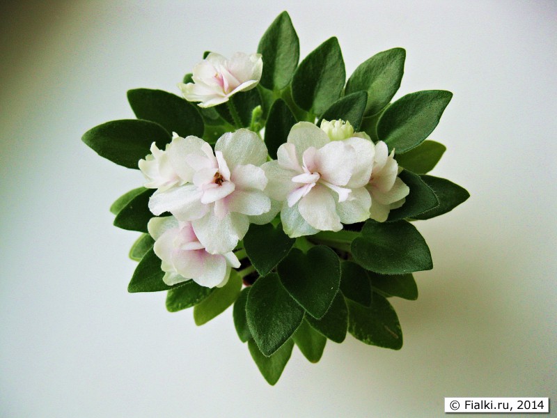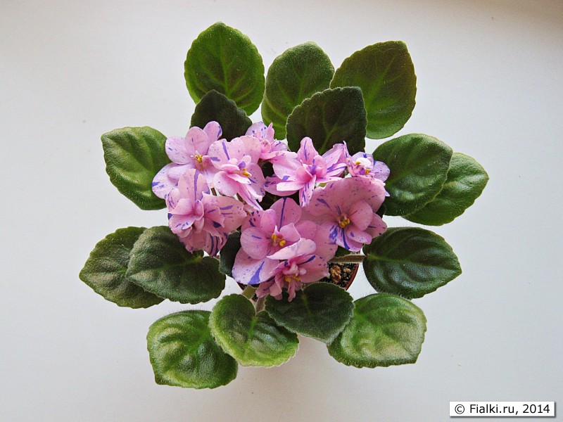 А это последнее цветение. Розетка уже взрослая. Здесь и пестролистность присутствует, и букетик нежных весенних цветочков, по-моему, очень неплох. Этот сорт у меня уже несколько лет. В любимчиках не числится, но и пожаловаться на него не могу. Совершенно неприхотливый, в моих условиях умеренно и разнообразно цветущий, с очень компактной розеткой. Честно говоря, со временем он мне нравится все больше и больше.