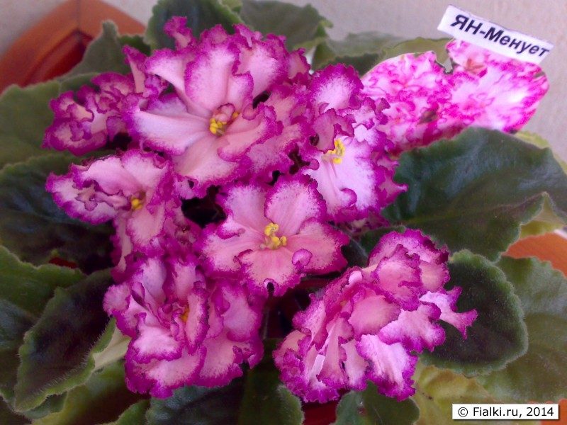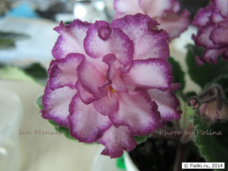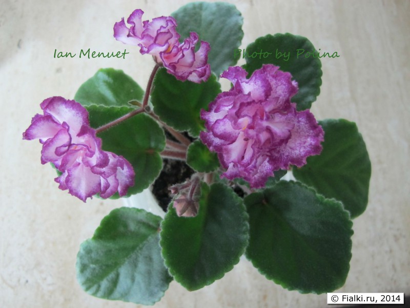 Полиночка, поздравляю! ЯН-Менуэт - очень достойный сорт. У меня Менуэтик в коллекции давно. И, не смотря на его очень капризную розетку, мысли расстаться с ним не появлялось. Цветение всегда пышное, цветы крупные. Сорт любит яркое, лучше дневное, освещение и прохладу. На полках под самыми лампами, но при высокой температуре, все-равно руки верх тянет. А на прохладном подоконнике розетка сразу выправляется. Вероятно, под самыми лампами ровная розетка получается, если температура регулируется кондиционером.