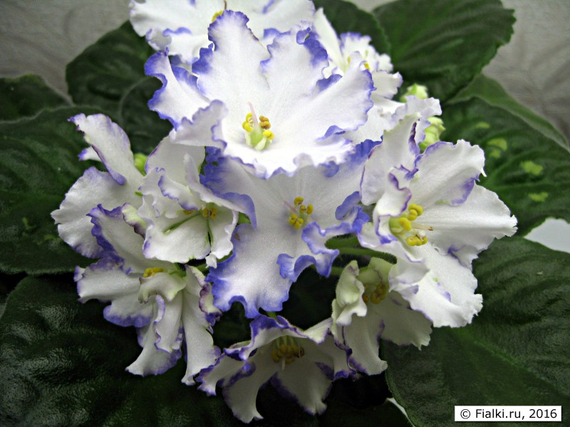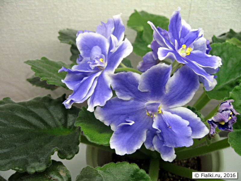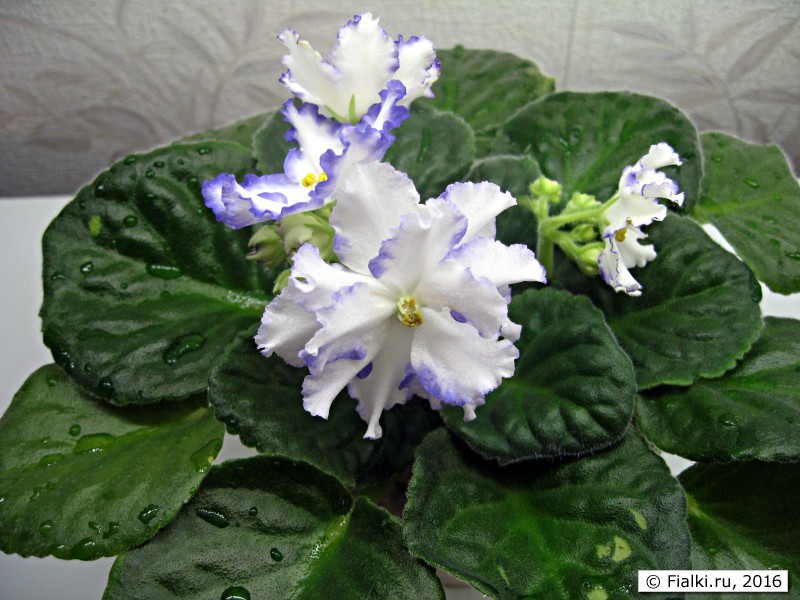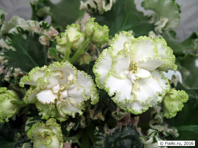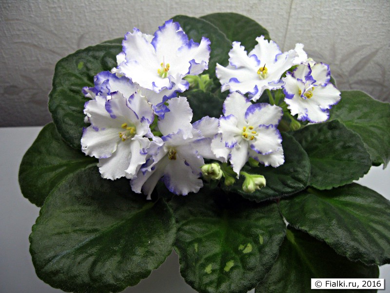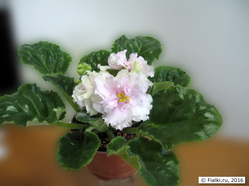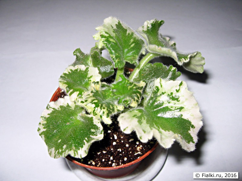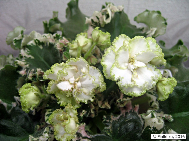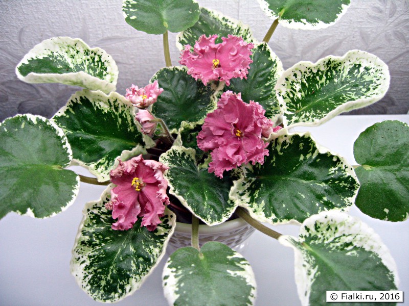 Ровные, отлично сформированные, с красивой пестролистной волнистой листвой! Безусловно, цветение только украшает красивые розетки. По-моему в этом сорте все: цветы и розетка дополняют друг друга, а вместе – полная гармония!