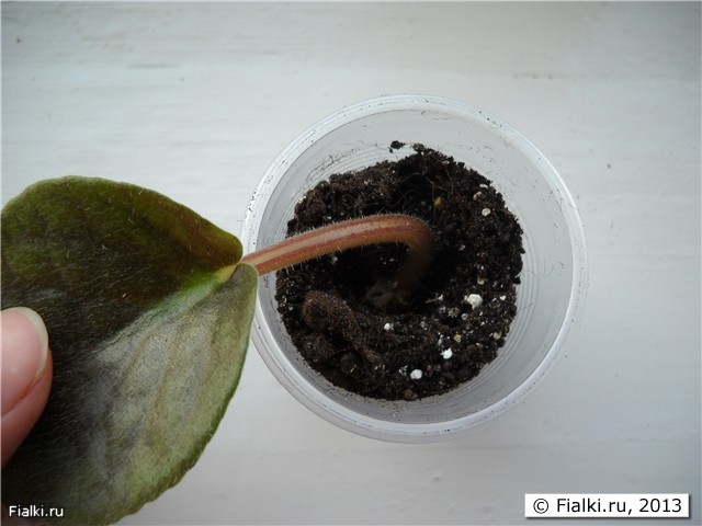 На мой взгляд надо обратить внимание на нижнюю сторону черенка.Бывает,что нижние листочки плотно лежат на краю горшка и повреждаются.Нужно обрезать листик так,чтобы эту часть убрать.Если листовые черенки нужны для дальнейшего размножения,можно временно положить кусочки ваты на места соединений листьев с краем горшка.