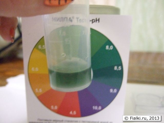 Но при индикации, если поднять мерный стаканчик с раствором на свет, имеет приблизительный цвет очень похожий на реакцию РН 6,5-7,0. Во всяком случае, хуже вода от такого фильтра не будет.