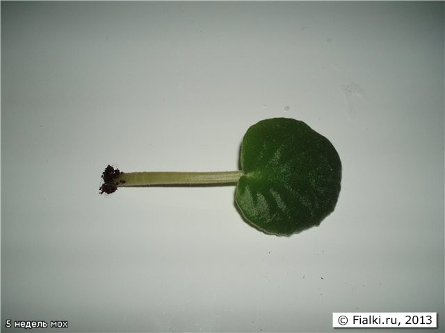 Прошло две недели. У листика, который был во мхе, появляются зачатки корешков.