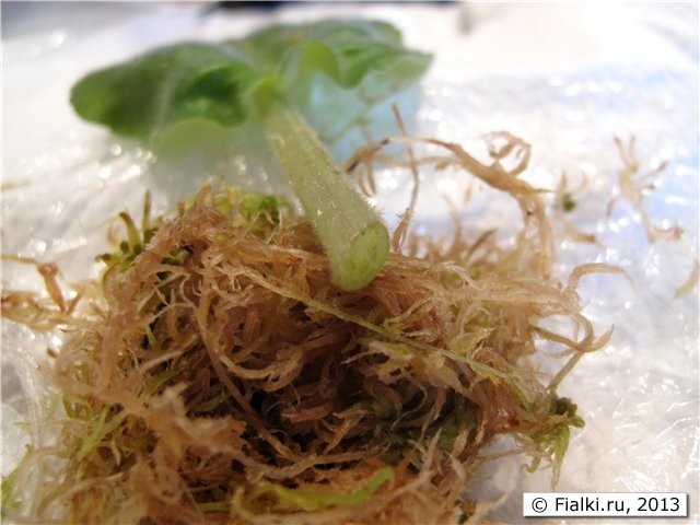 Я знаю, что обычно листья, пришедшие в сфагнуме, не вынимают из упаковки, а сажают прямо так. Но это ж фотоурок, поэтому я развернула, чтобы посмотреть срез. Срез чудесный! Будто бы только что с розетки. Прекрасно дошедшие черенки!