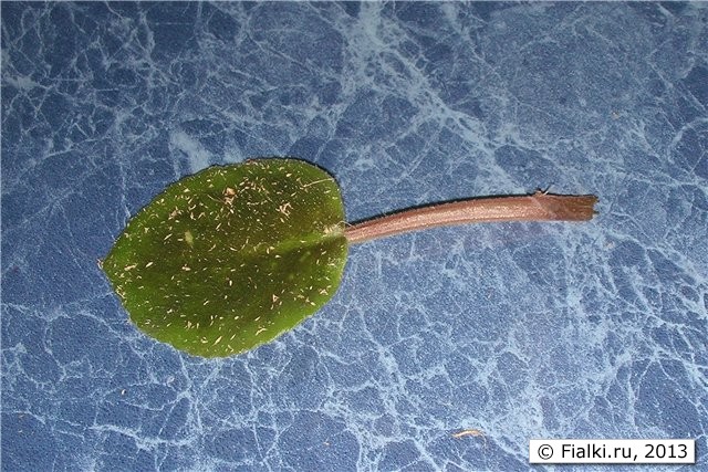 У данного черенка сгнил весь черенок, плюс затронуто основание листовой пластины, плюс значительно потерян тургор. Срезала всю гниль, продезинфицировала, посадила только листовую пластину. Честно говоря, не думаю, что здесь что-то отрастет.