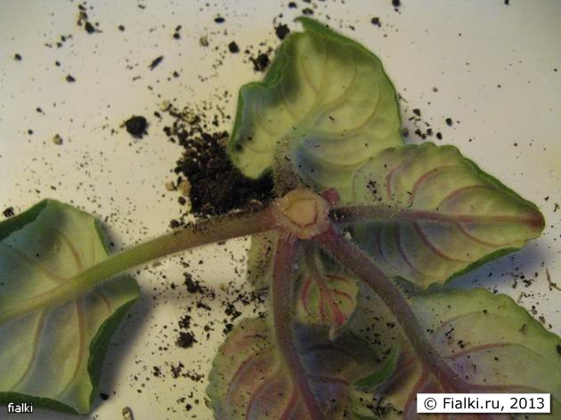 Если пришлось обрезать листья фиалки, их можно укоренить обычным образом, перед этим желательно также подержать листья в отбеливателе.