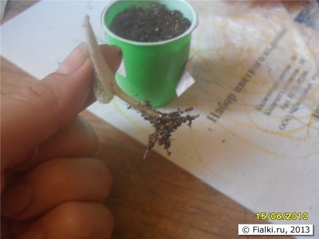 В конце мая я писала как я рассаживала черенки мини и полумини http://www.fialki.ru/node/6023. Прошло совсем немного времени и черенки дали корешки