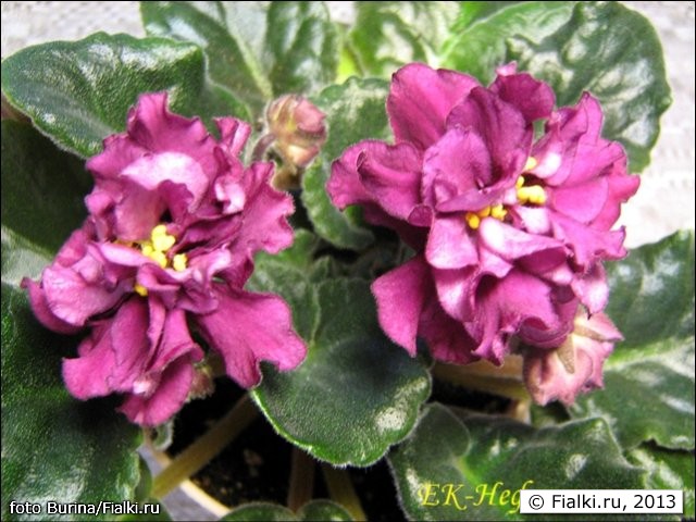 Еще один "коршунёнок", ЕК-Нефертити, крупные махровые дымчато-бордовые звёзды над аккуратной тёмно-зелёной розеткой :