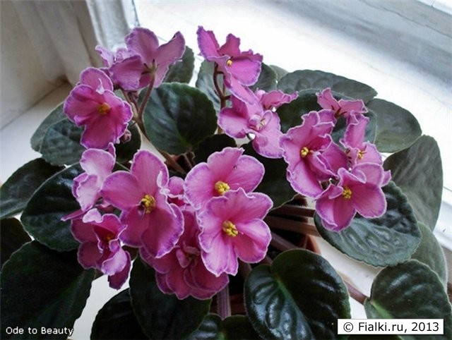 Отличный сорт. Тёмно-зеленая листва, аккуратная розетка. Цветы - звёзды, с двойной каймой. Всегда стоячие цветоносы. Цветков много, и, при усердии, можно получить отличную "шапку". Из моих долгожителей.