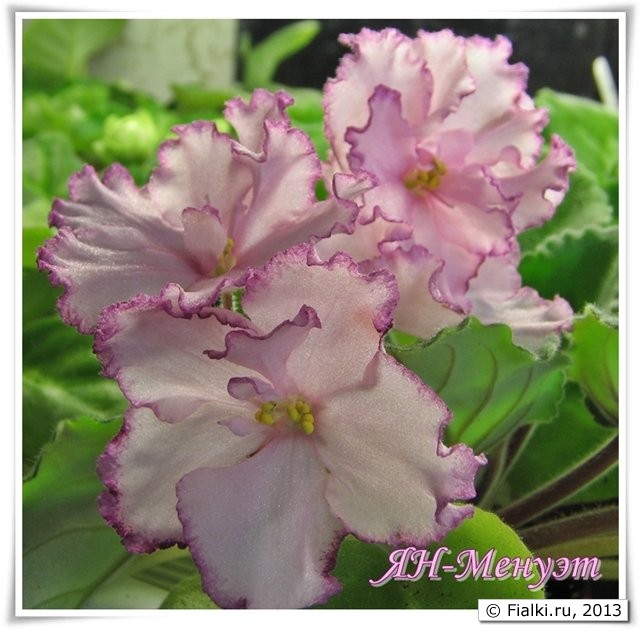 ЯН-Менуэт. Очень крупные махровые бело- розовые звёзды с контрастной малиновой каймой. Все традиционно, но очень мило.
