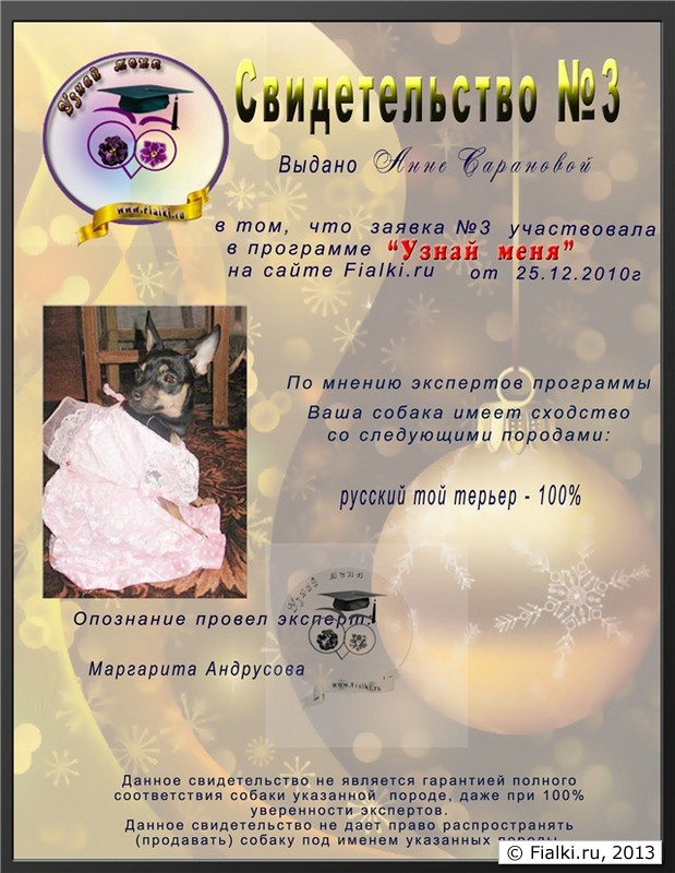 Опубликованы Свидетельства шоу- программы "Узнай меня-2" Fialki.ru: