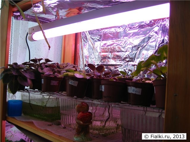 здесь высота конечно нужна побольше, но для выгонки малышни пойдет .Расстояние до ламп меньше 10 см, но я горшки постоянно перетасовываю - так спасаемся от пересвета. ну и потому что выбрасывают бутоны и я их на видное место выставляю. Движение по карьерной лестнице у моих цветочков, так сказать!