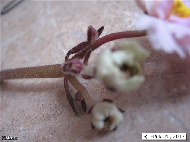 Пробовала "разбирать" цветы и бутоны, трясти их над темным и светлым..Никого не обнаружила, "пыльца не поползла" (это я о трипсах). На самих кустах, листах, цветоносах никто не лазает. Растения выглядят вполне здоровыми, розетки молодые и крепкие. Все обитают на стеллаже возле восточного окна, притененные от утреннего солнышка. У всех поврежденных экземпляров это первое цветение (кроме Свадебного букета, потому мне и не нравятся его бутоны, в первое цветение было иначе). Правда, имел место однократный залив около трех недель назад, а сейчас становится все жарче и суше (на стеллаже по утру до 30-ти градусов, а то и больше доходит).