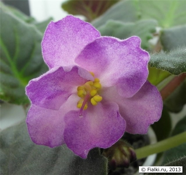 Apache Jewel (J. Munk ) - Полумахровый лавандовый двухцветный, оборчатый, анютка/темный глазок. Листва пестролистная темно-зеленая, кружевная: