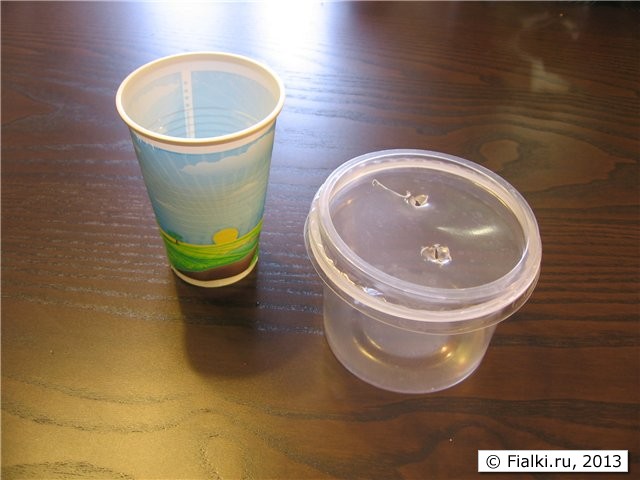 4. Емкости для питательного раствора. Это могут быть одноразовые стаканчики, тара из-под сметаны, йогуртов, а также специально сделанные емкости. В моем случае это тара из-под сметаны и одноразовые стаканчики объемом от 0,1 до 0,2 л.: