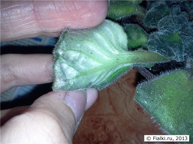 Нижние листочки - это то, что было, когда фиалка стояла под лампами.