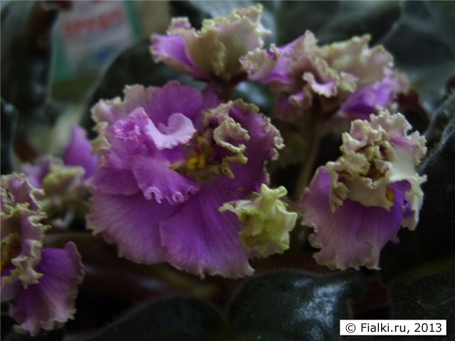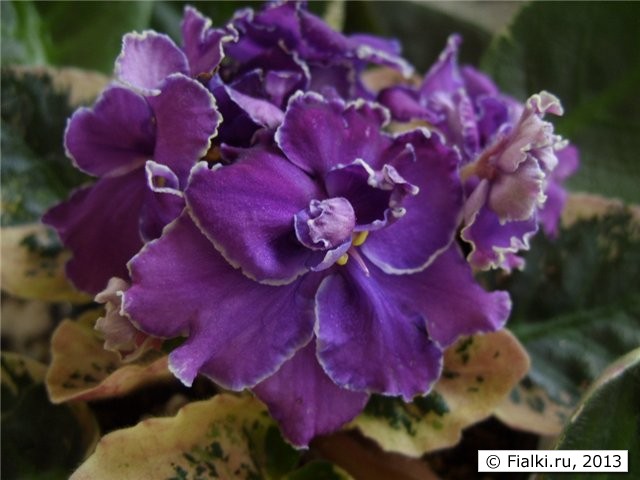 Silverglade Rumples (S. Harrison) - Полумахровые и махровые двухтоновые орхидно-лиловые цветы с сильно гофрированной каймой. Тёмно-зелёная стёганная листва с пестролистностью.