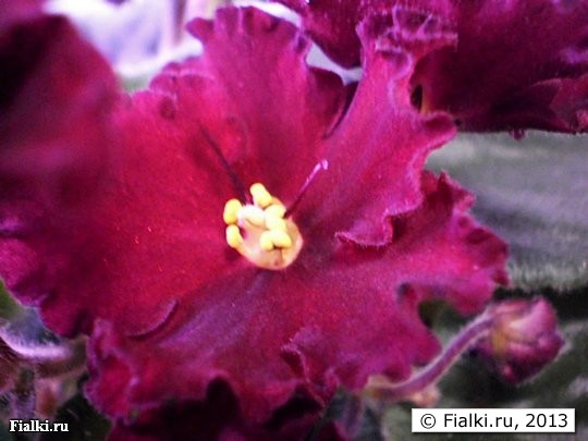 Ness Red Velvet. Цветет постоянно. Плотной шапочки у меня не было. Над розеткой "торчат" яркие, горящие цветы. Он не любит фотографироваться.