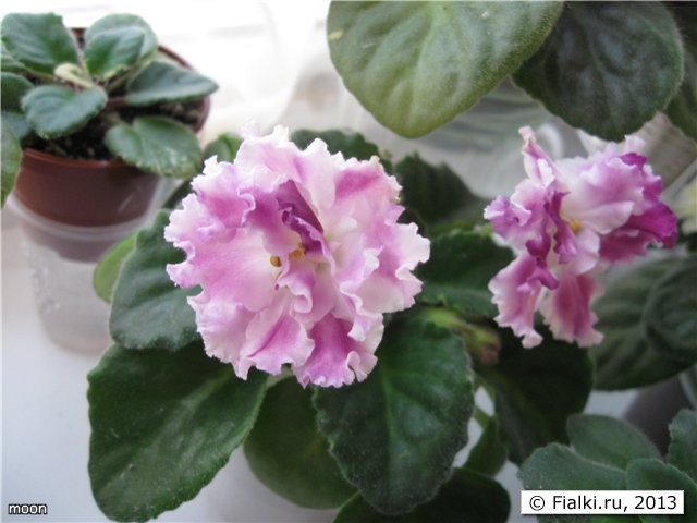 Третий участник показа L-Rover. Был выращен из листа, в августе проклюнулись детки и только этой весной показал себя . Продолжительное цветение. Крупные розовые цветы с синим фэнтези и белым глазком.
