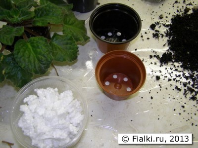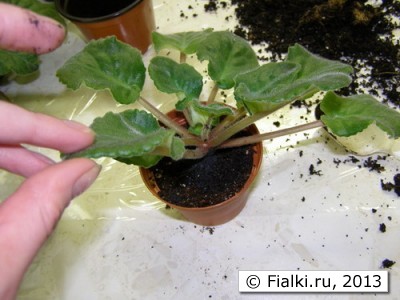 Омолаживание сенполии с одновременной посадкой на фитильный полив.