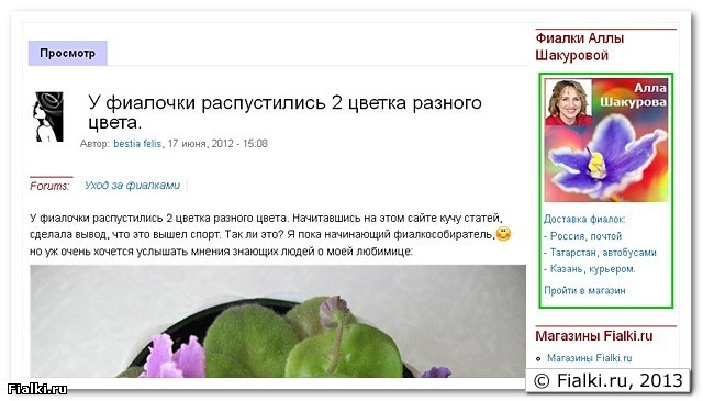 Как реклама мини-витрина работает гораздо мягче. Статичная реклама интересна только тем кто собирается делать заказ, но мини-витрина является филиалом Реестра и приносит пользу также обычным фиалочницам, знакомя их с сортами. В процессе знакомства с сортами у некоторых Гостей появляется желание сделать заказ.