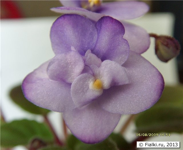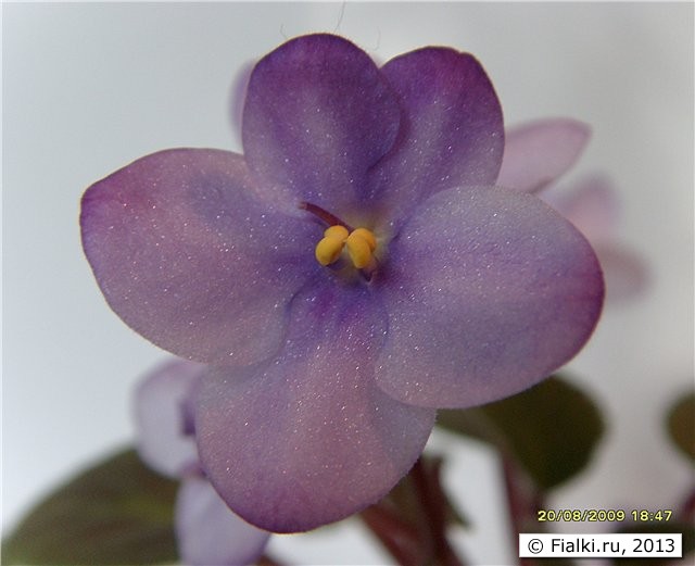 Крупный полумахровый орхидный цветок с более светлыми центральными полосами; стеганая листва. Мини